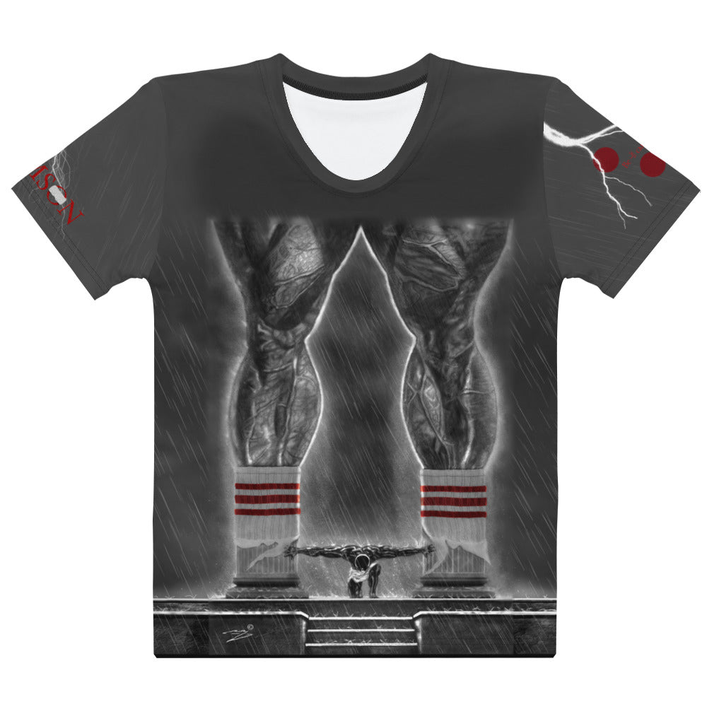 The inner part of the legs are illuminated to highlight a structure of a Temple.